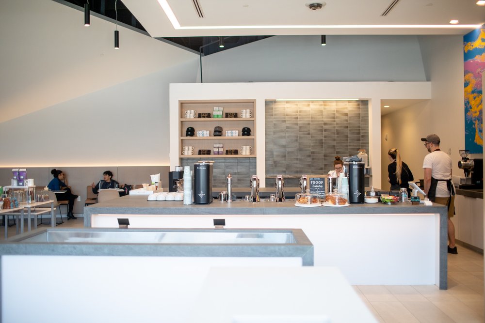 Meet up with friends relax or work with our free wifi enjoy a delicious sweet or savory treat or catch some live music. The bright and airy shop offers plenty of seating including a patio out front and floor-to-ceiling bleachers just beyond the doors in the lobby of the complex. A second location is opening in the former San Francisco Coffee space on North Highland Avenue.